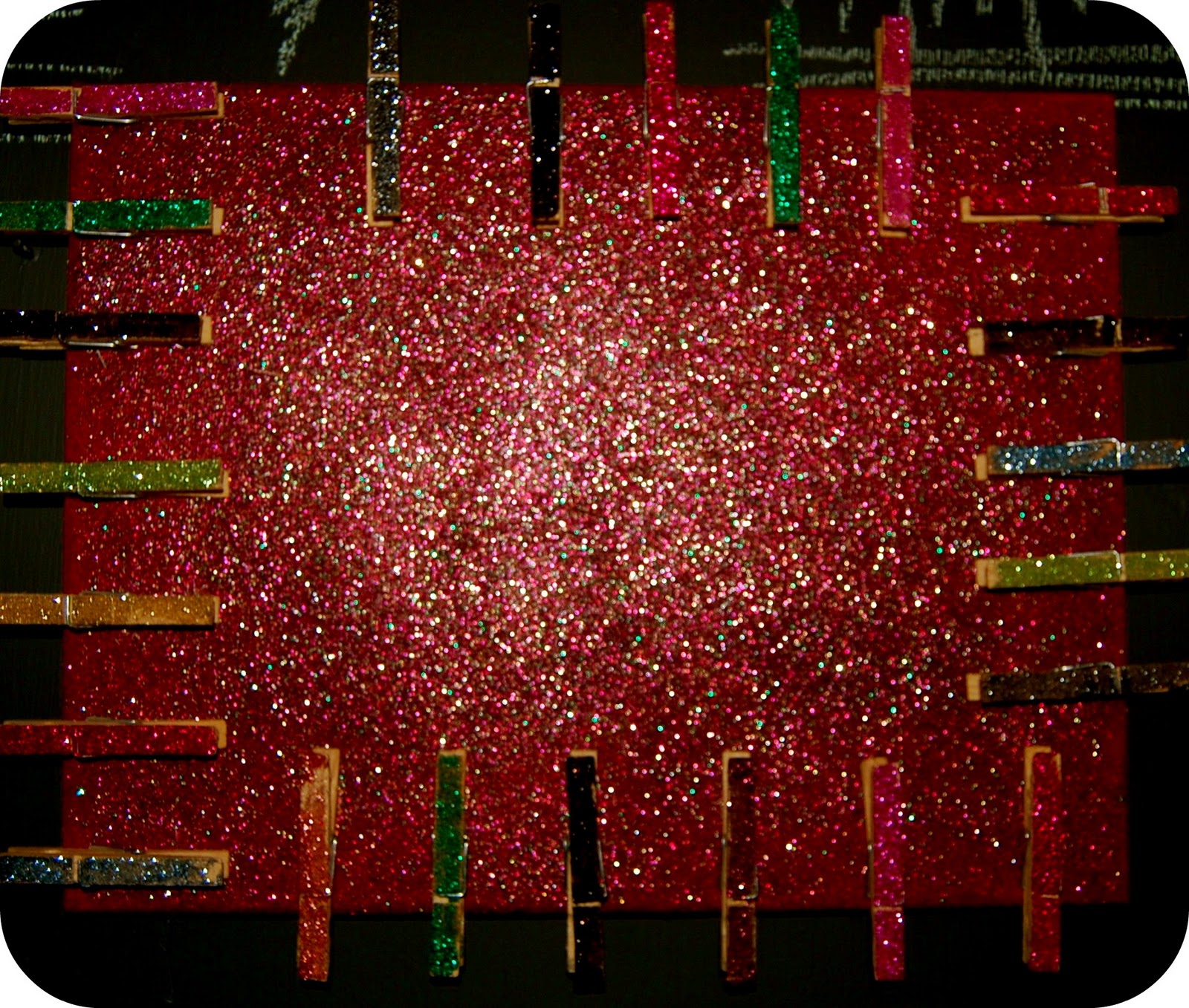 P.S. I just took some clothespins and put glitter on top {well I put glue on first so the glitter would stick silly goose}. |
