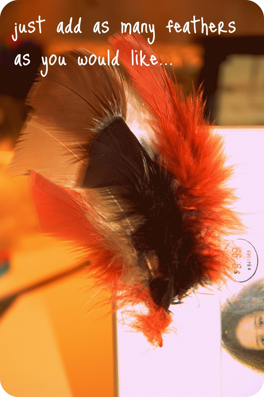 *really, any feathers will work. if you have an old boa that you used to wrap around your neck in your younger days, bring it on OUT of the closet {literally}…