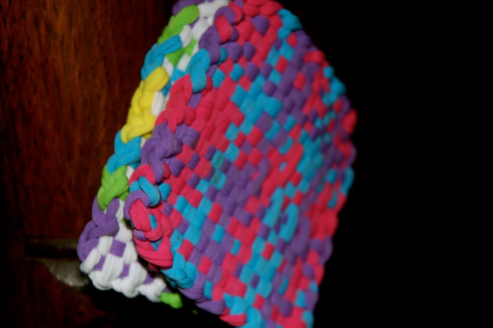 I had to share this with you! The other day I was browsing around Wal-Mart and ran across a bag of fabric loops. I am not really sure who remembers these but I sure do! So, I bought them. And decided to make coasters and see if I could relive a childhood moment. It worked!!!! They are actually the best coasters ever and so pretty!!!! I suggest you go out and get some. You can find them in your local craft section. Until next time…