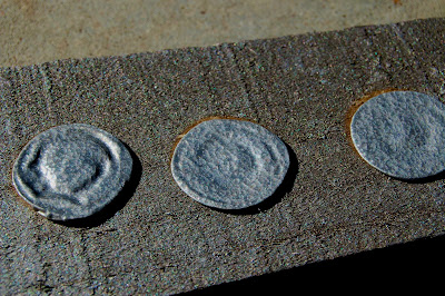 Once they are completely dry you will put a hole in the bottle cap by hitting it where you want with your hammer and nail. You just want to hit the nail until it makes a hole then you will pull it out.