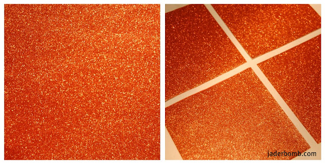 I used a orange glitter sheet from the pack. Then I cut the sheet into four squares |