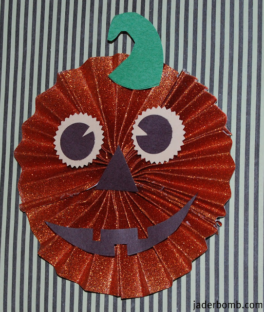 You will need Martha Stewart’s designer paper pad (Halloween), glue gun, paper cutter, and scissors |