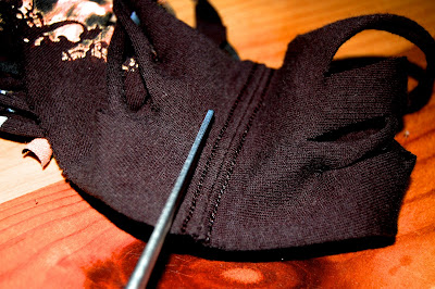 On one of your sleeves you will cut at the seam completely. By doing this you will now have one long strip with all the little strips hanging all over. Just cut one because if you cut both seams you will have two separate pieces.